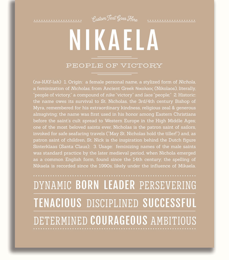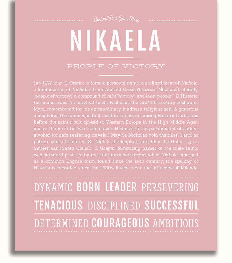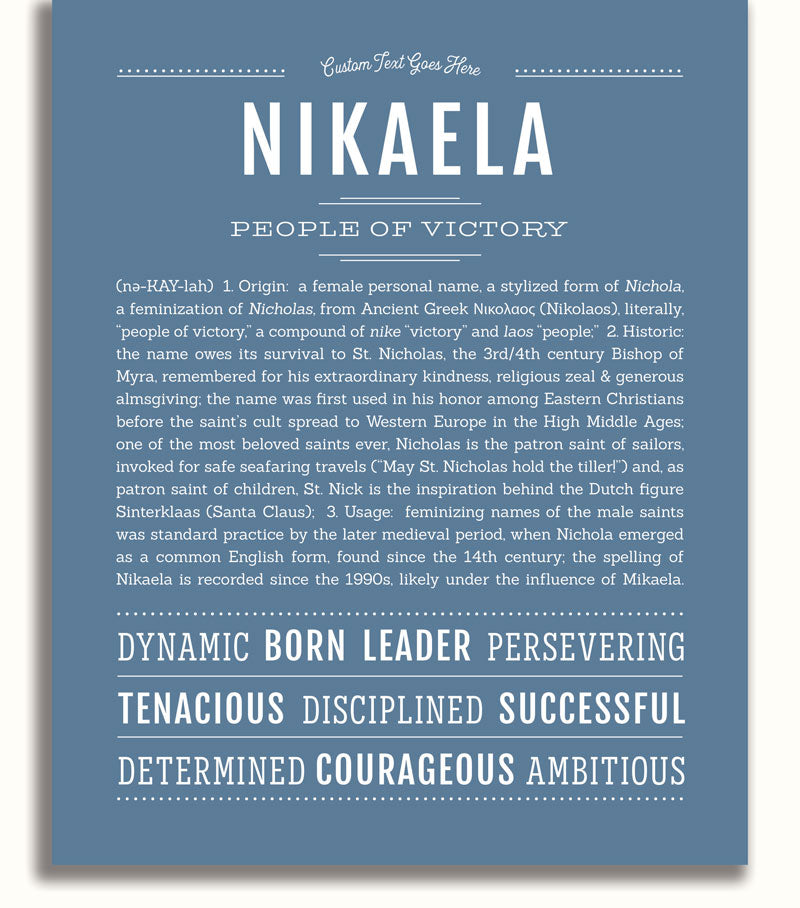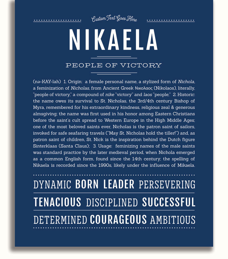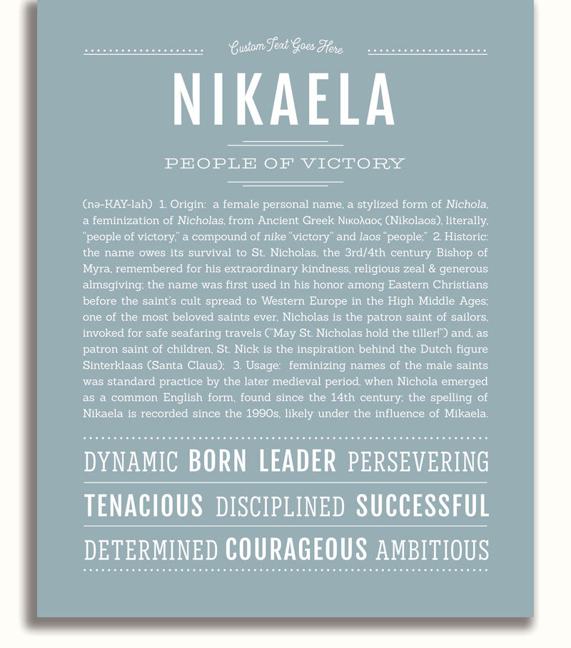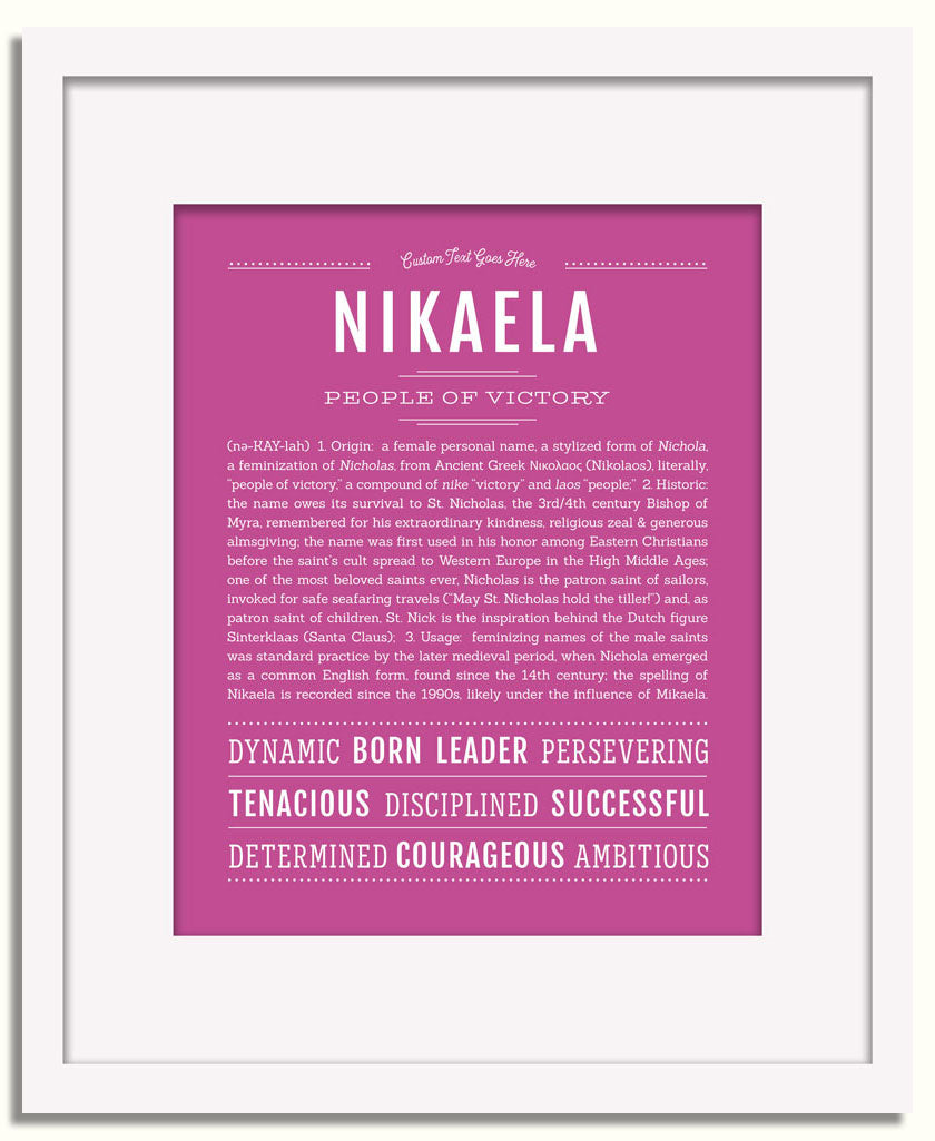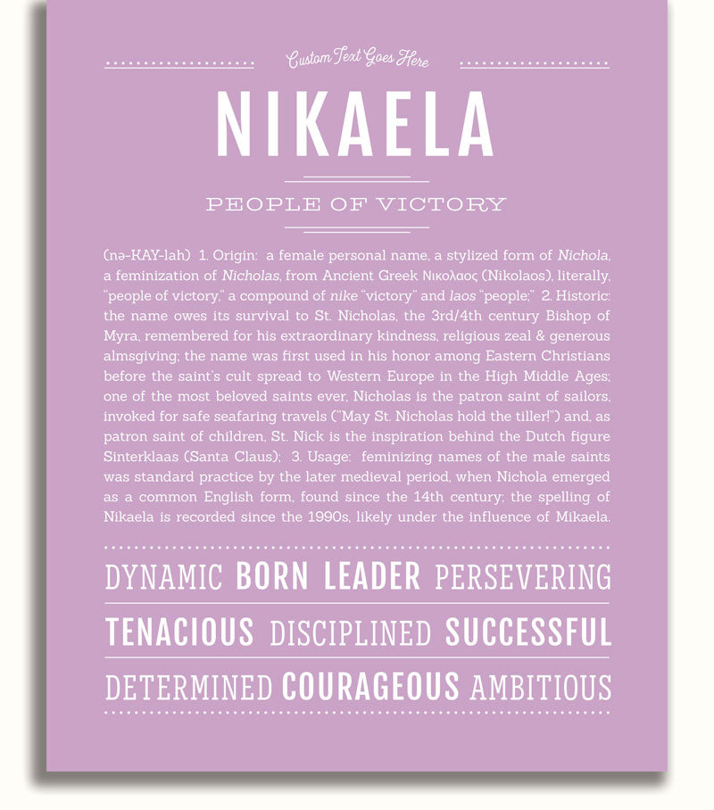 Names Stories® is not only a timeless keepsake of Nikaela’s name, but a thoughtful reminder of who Nikaela is: today, tomorrow, and always.