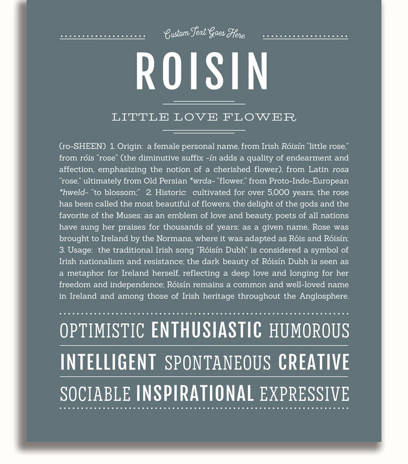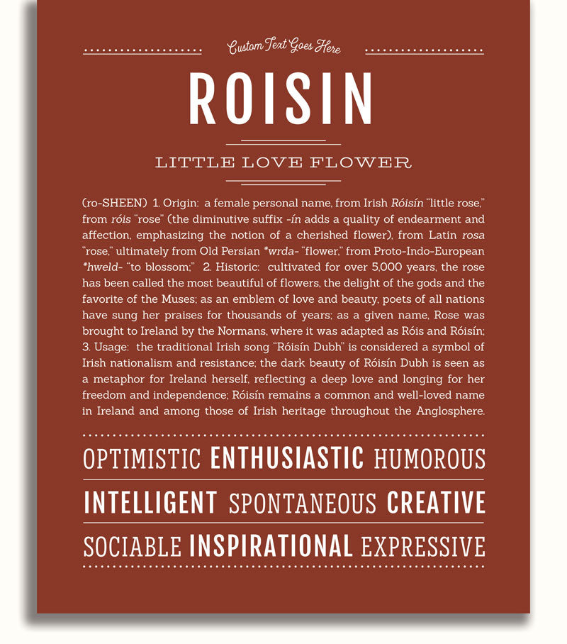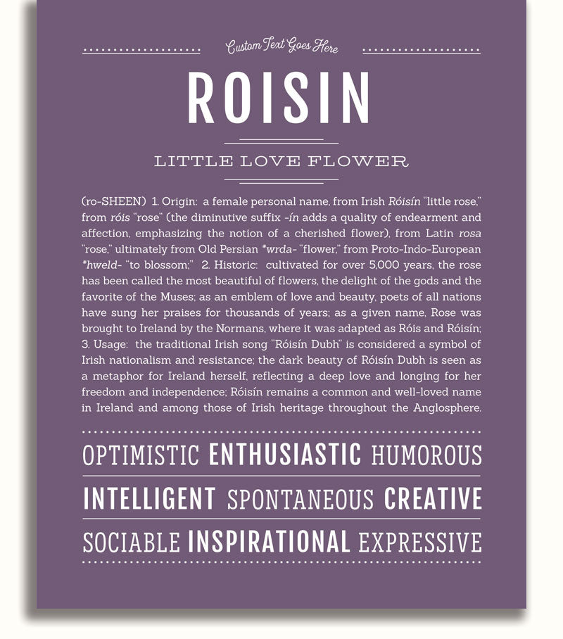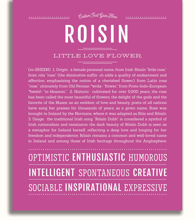 Names Stories® is not only a timeless keepsake of Roisin’s name, but a thoughtful reminder of who Roisin is: today, tomorrow, and always.