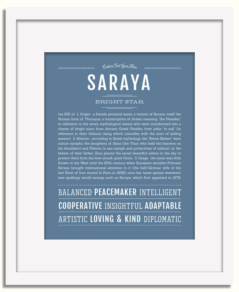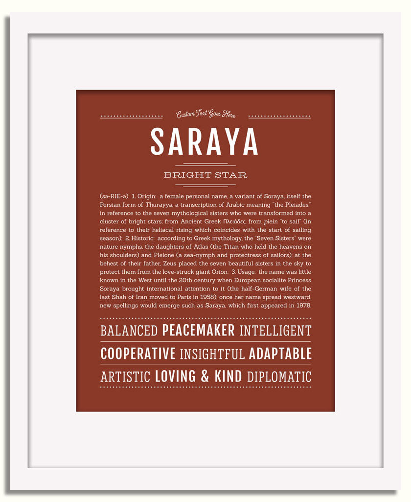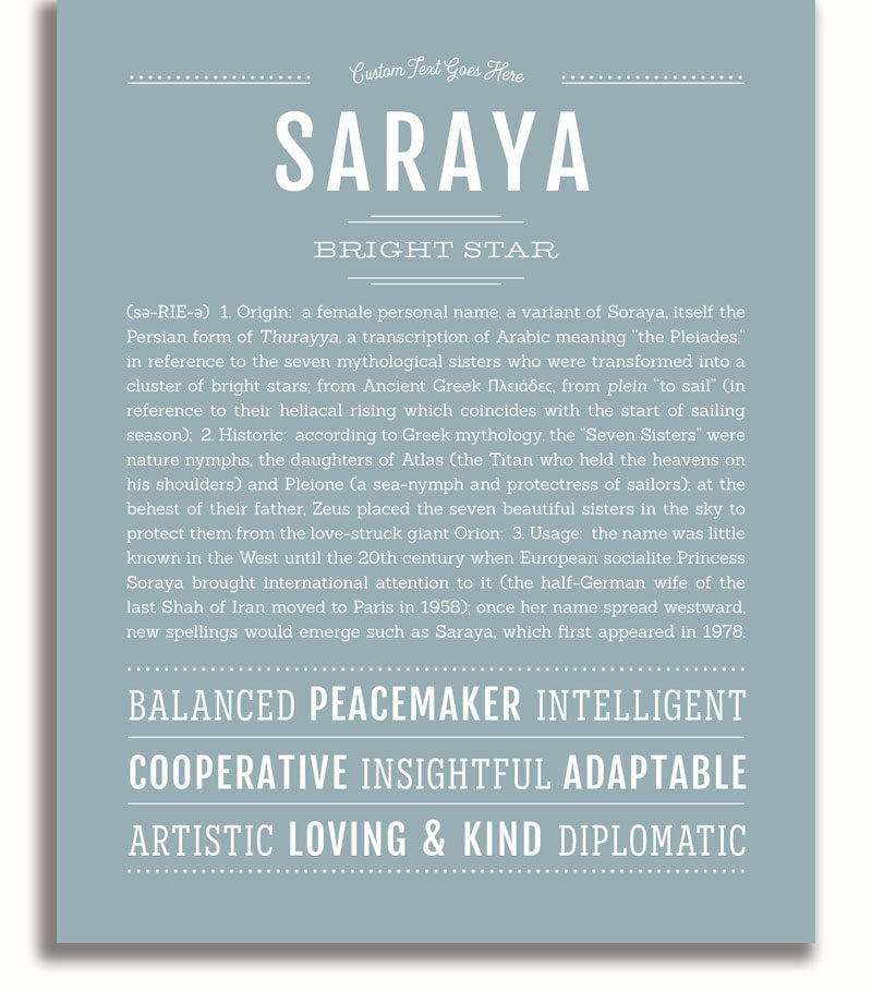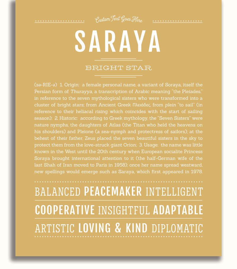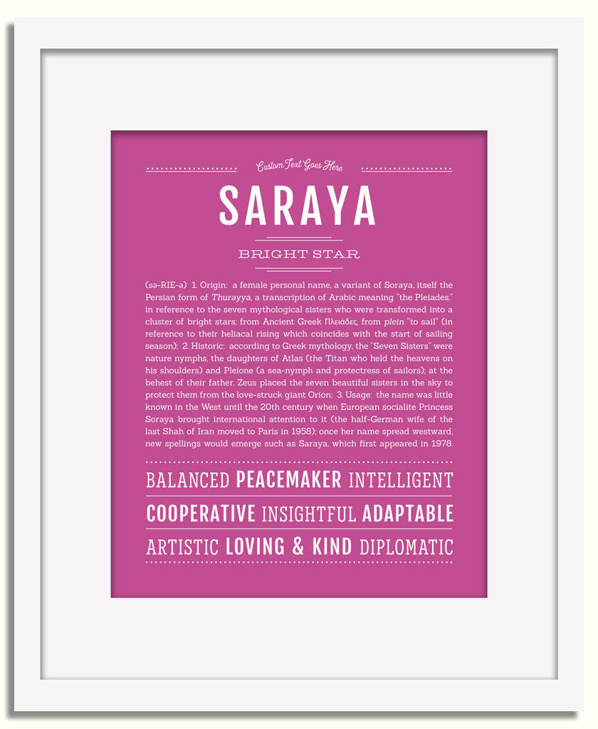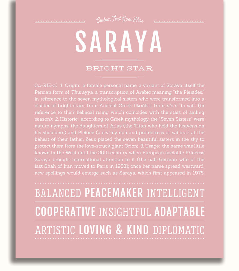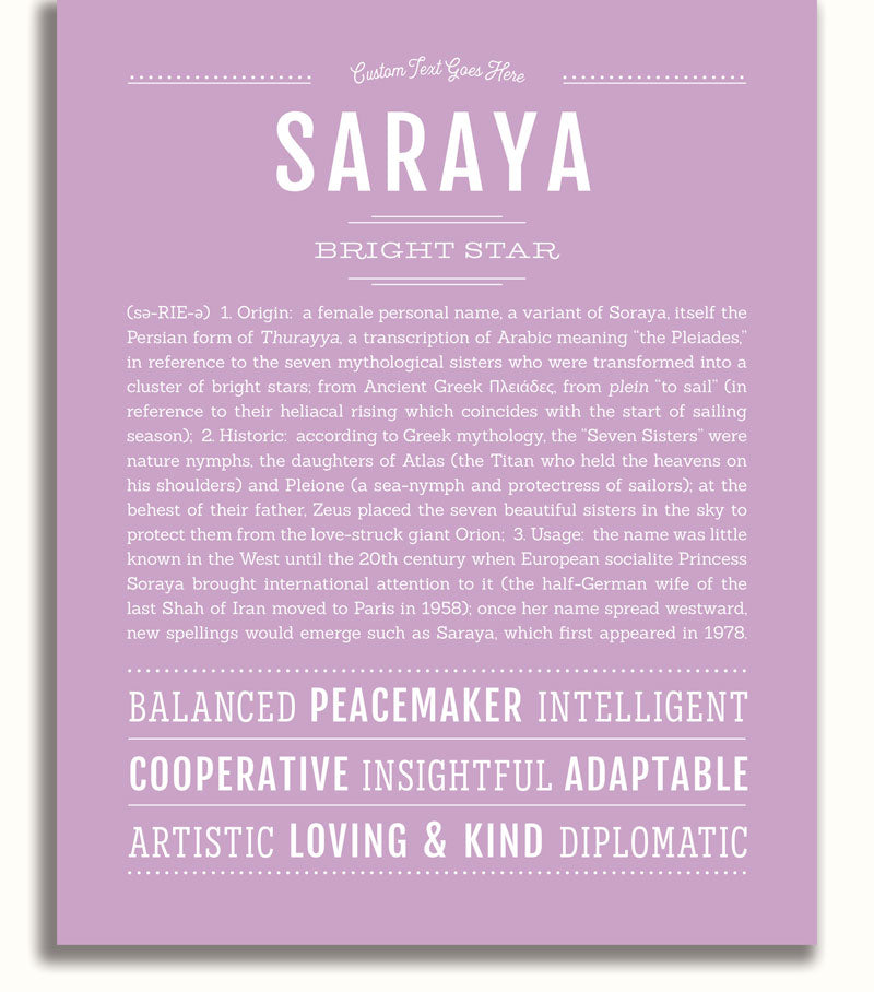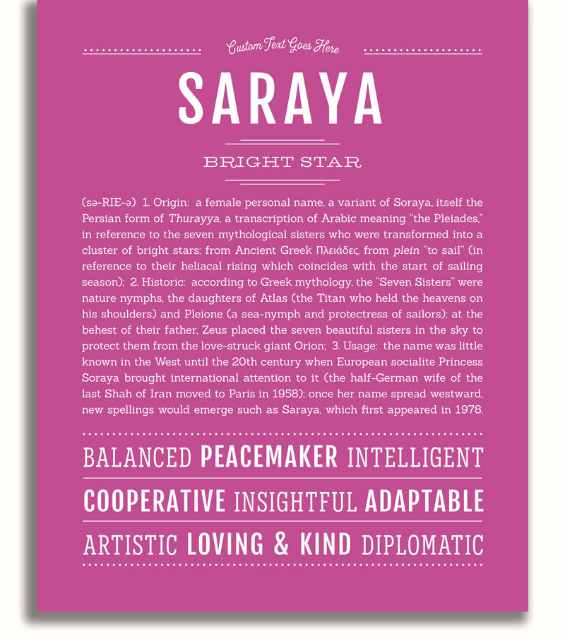 Names Stories® is not only a timeless keepsake of Saraya’s name, but a thoughtful reminder of who Saraya is: today, tomorrow, and always.