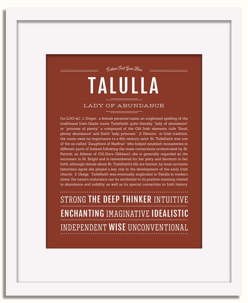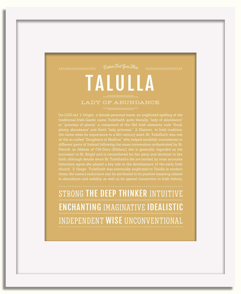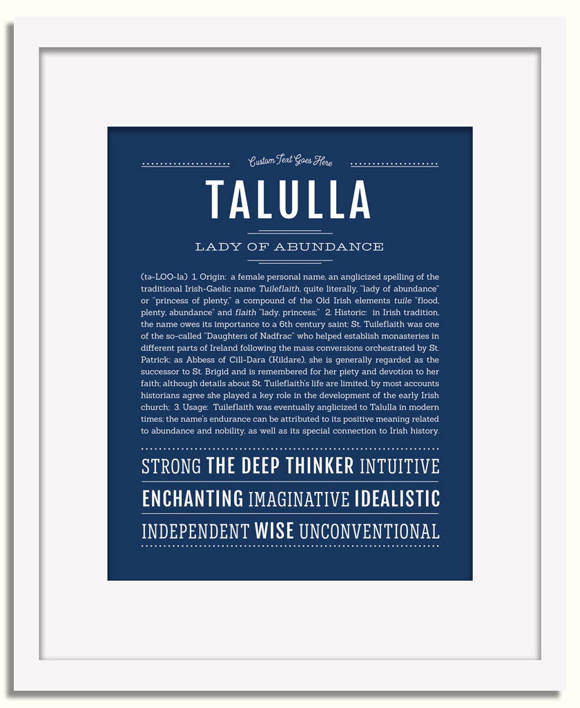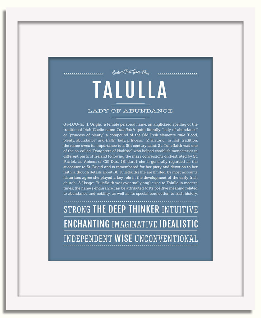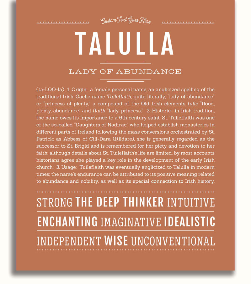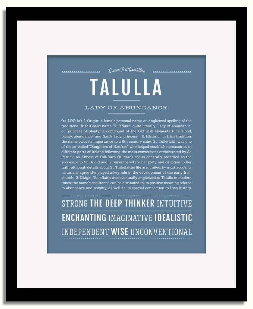Names Stories® is not only a timeless keepsake of Talulla’s name, but a thoughtful reminder of who Talulla is: today, tomorrow, and always.
