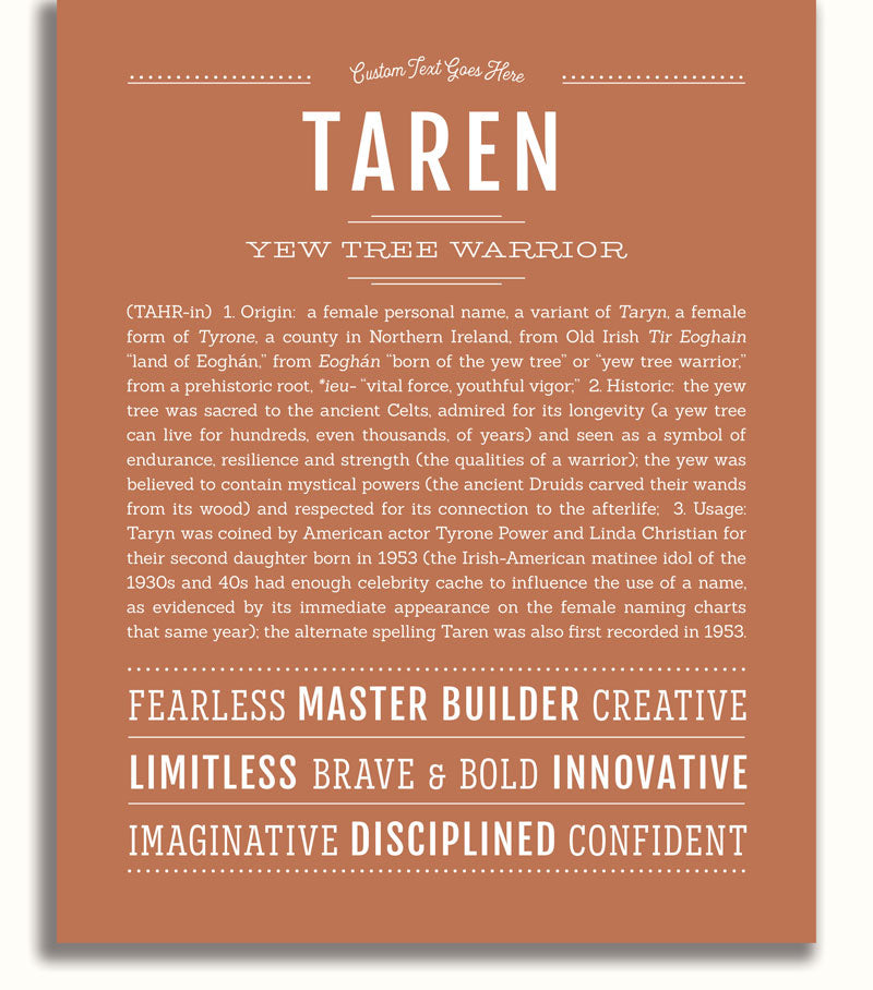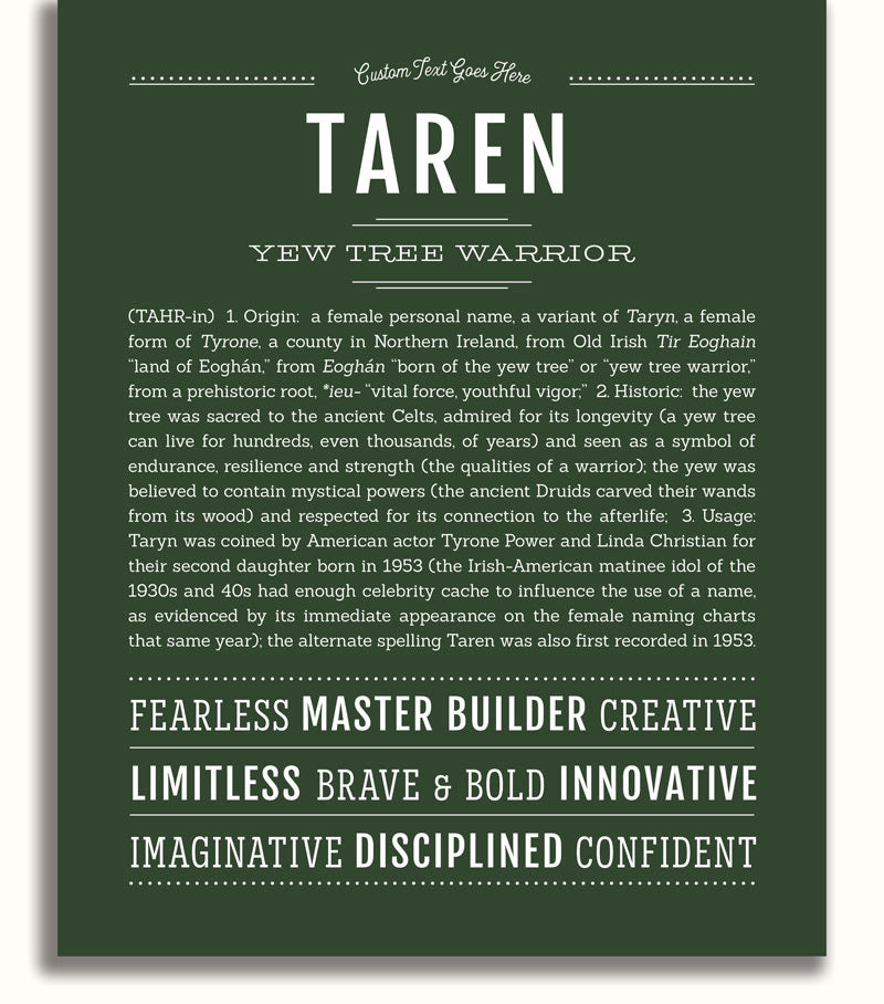 Names Stories® is not only a timeless keepsake of Taren’s name, but a thoughtful reminder of who Taren is: today, tomorrow, and always.